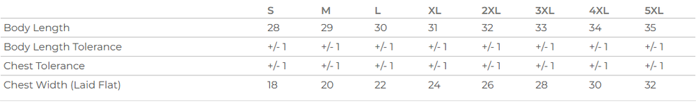 - Increased body and sleeve lengths to accommodate shrinkage.